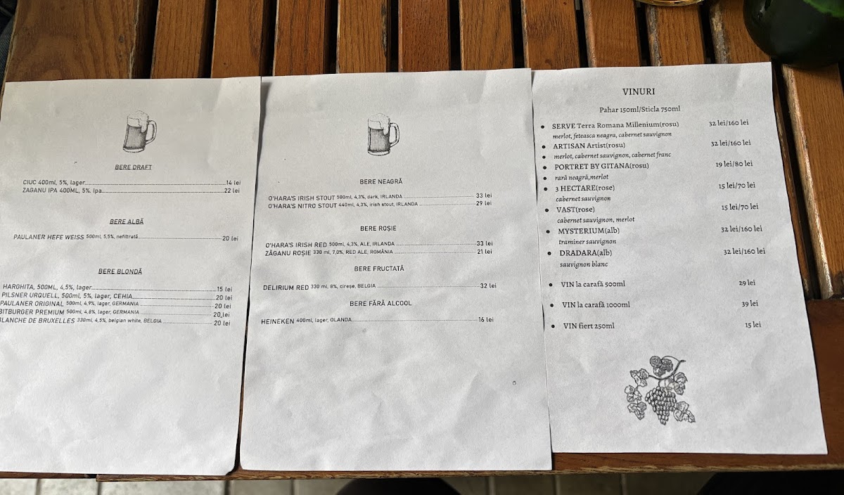 For those seeking something lighter, the Falcon Skewers offer delicious chicken served with greens. Complement your meal with tasty sides like Grana Padano Wedges or Grilled Vegetables. Guests rave about the cozy atmosphere and friendly staff, making it the ideal spot for casual meet-ups or unwind in the serene garden. Whether you're a fan of craft beer or delectable comfort food, Gradina Mantuleasa promises a satisfying dining experience.